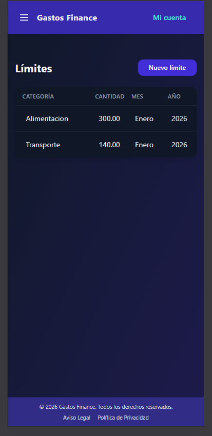En el apartado de Límites, puedes definir presupuestos por categoría de gasto y visualizar en tiempo real cuánto has consumido, qué porcentaje te queda disponible y cómo impacta en tu balance general.