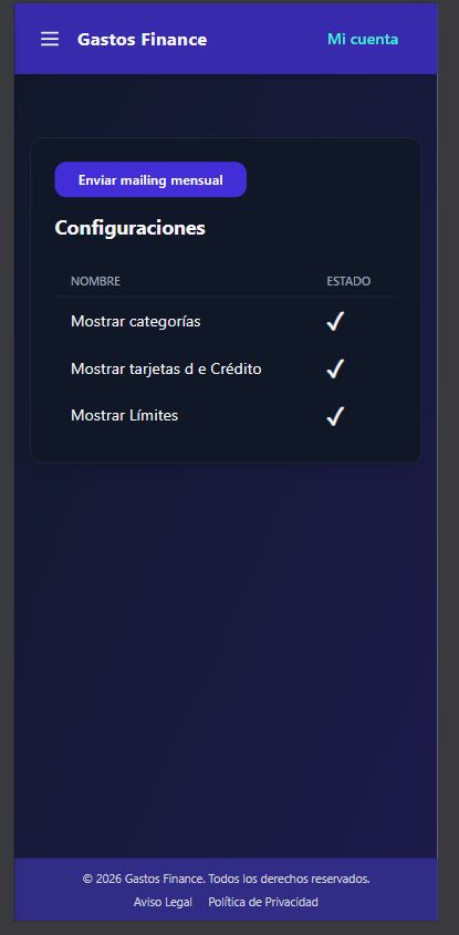 Desde Ajustes, cada usuario puede personalizar su experiencia, ocultando secciones como límites, tarjetas de crédito o categorías, de forma independiente al resto del grupo.