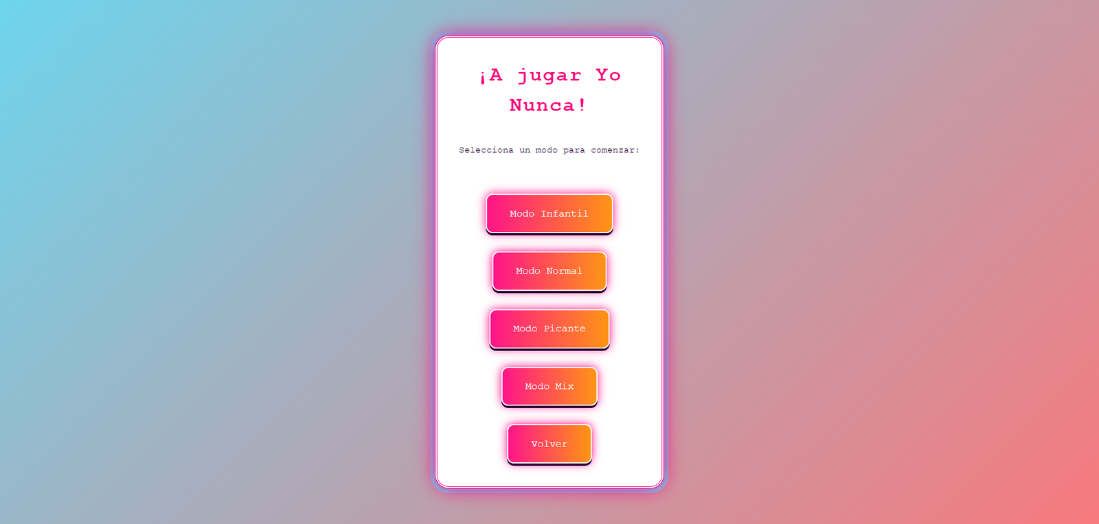Esta aplicación es una versión retro del clásico Yo Nunca, diseñada para funcionar tanto en dispositivos móviles como en ordenadores. Está desarrollada con Vue 3 en el frontend y Laravel 12 + PHP 8.2 en el backend, logrando una experiencia rápida, estable y moderna.